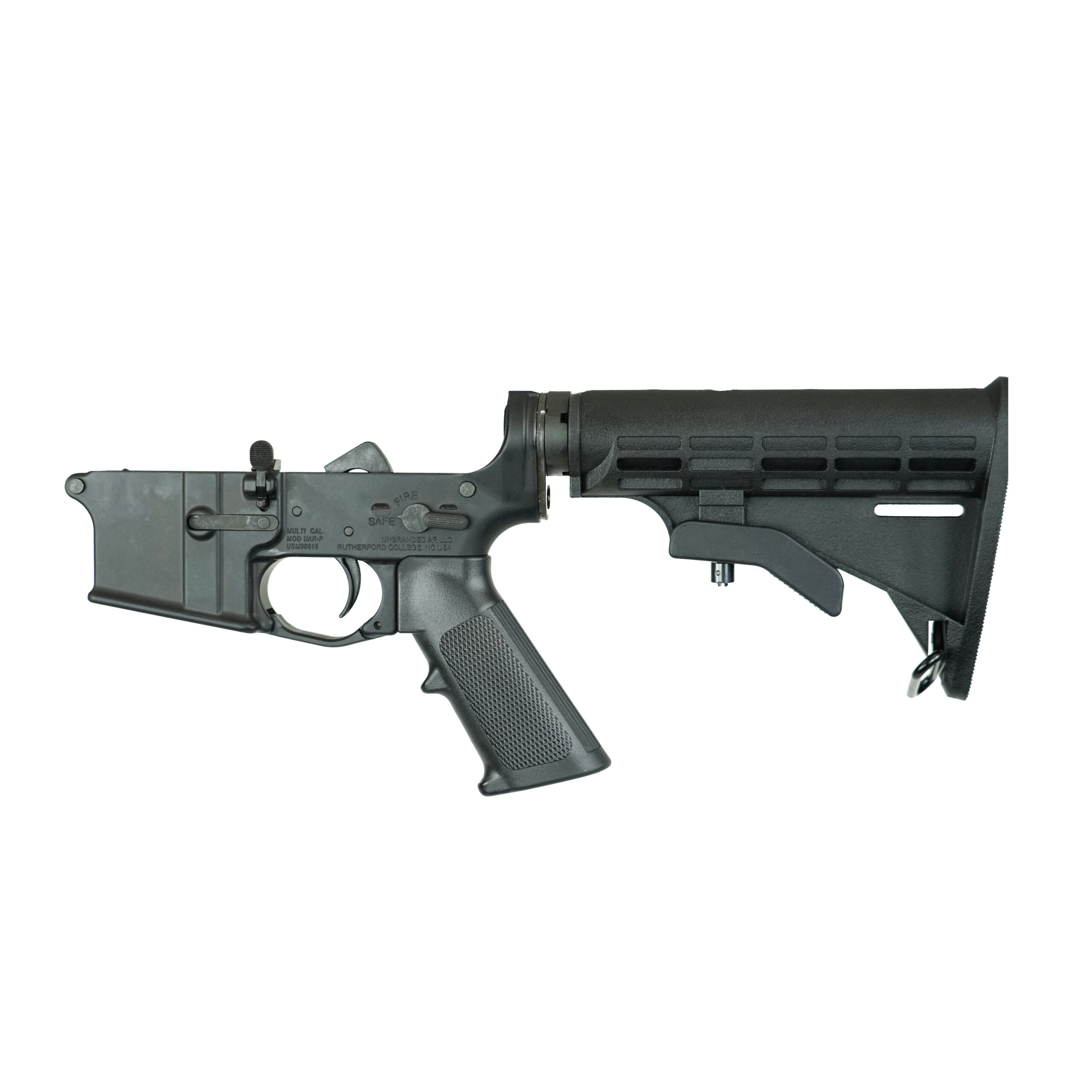 [COMPLETE STANDARD LOWER] Our UnBrandedAR standard receiver is a reliable and cost-effective foundation for your next AR build! Machined from 7075-T6 aluminum forging and finished with a rugged black anodize, this lower delivers exceptional strength and durability. It features standard controls for intuitive operation and comes fully assembled with a Carbine Buffer System, ELG Fire Control Group, and a black A2 pistol grip for a classic feel. The included Mil-Spec M4 stock (black) ensures a secure and adjustable shoulder fit. Whether you're building a duty rifle or a dependable range gun, the UAR Standard Lower offers premium components at a solid value—ready to pair with any UAR or compatible upper.
